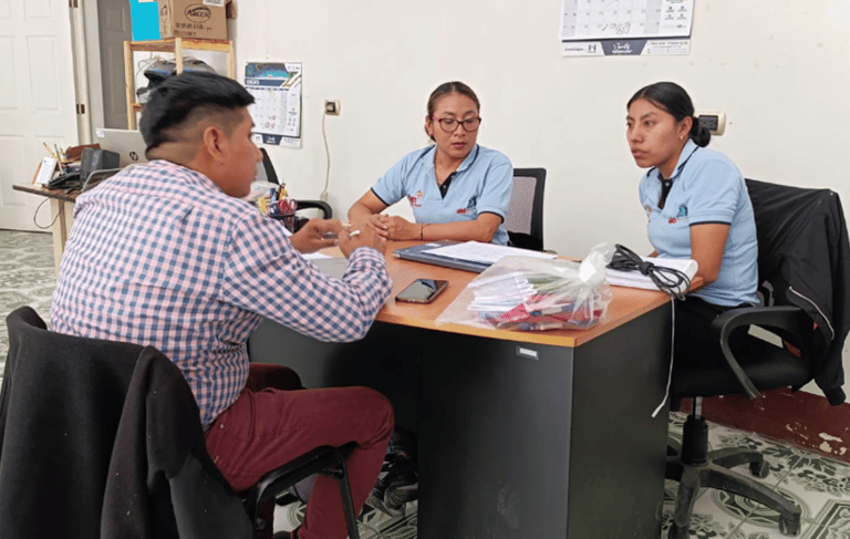Reunión de gestión entre la Coordinadora del Programa de Educación, la Coordinadora de Programas y Proyectos de AIDEPCE y el asesor psicopedagógico departamental del Ministerio de Educación. Durante el encuentro, se coordinaron acciones conjuntas para fortalecer los procesos de inclusión y acompañamiento educativo en beneficio de las personas con discapacidad en Cubulco y Rabinal.